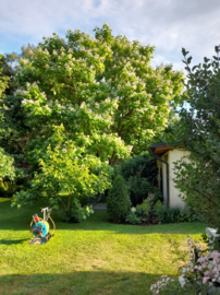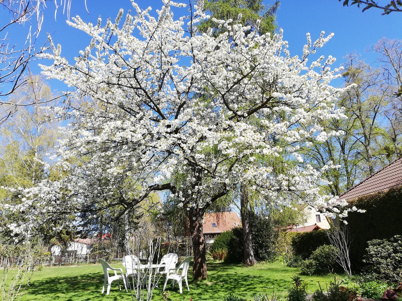 Er hält uns fit, denn immerhin ist er 2000 qm groß und will gepflegt werden. Wir tun das gerne und freuen uns, wenn alles wächst und gedeiht.